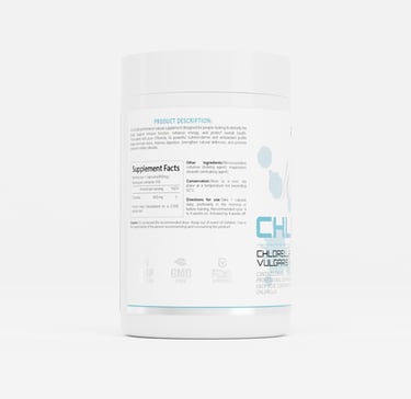 CHLORELLA es un suplemento natural elaborado a partir de microalgas verdes de agua dulce, reconocidas por su alto contenido de clorofila, vitaminas, minerales, proteínas y antioxidantes. Su fórmula apoya los procesos naturales de desintoxicación del organismo, promueve la regeneración celular y contribuye a mantener energía y equilibrio en la rutina diaria.