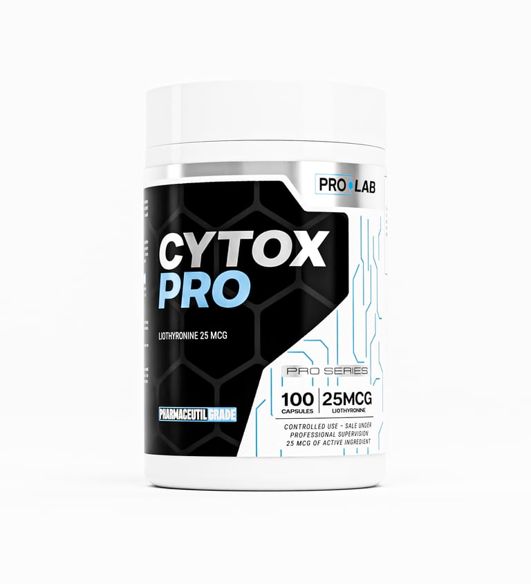 Indicaciones: CYTOX PRO es una forma sintética de la hormona tiroidea T3, utilizada para tratar el hipotiroidismo. En el ámbito deportivo, se emplea para acelerar el metabolismo y promover la pérdida de grasa en ciclos de definición.