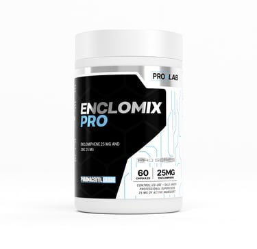 Indicaciones: ENCLOMIX PRO es un modulador selectivo de los receptores de estrógeno (SERM) utilizado principalmente para tratar el hipogonadismo masculino secundario, ayudando a restaurar la producción natural de testosterona. En algunos contextos clínicos, también se emplea para mejorar la fertilidad masculina al estimular la producción de espermatozoides.