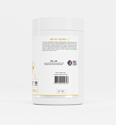 MULTIVIT+ es un complejo multivitamínico avanzado diseñado para optimizar la energía, fortalecer el sistema inmunológico y mantener el equilibrio general del cuerpo. Su fórmula combina vitaminas, minerales y oligoelementos esenciales que contribuyen a un metabolismo activo, una mente clara y un cuerpo resistente frente al estrés físico y mental.